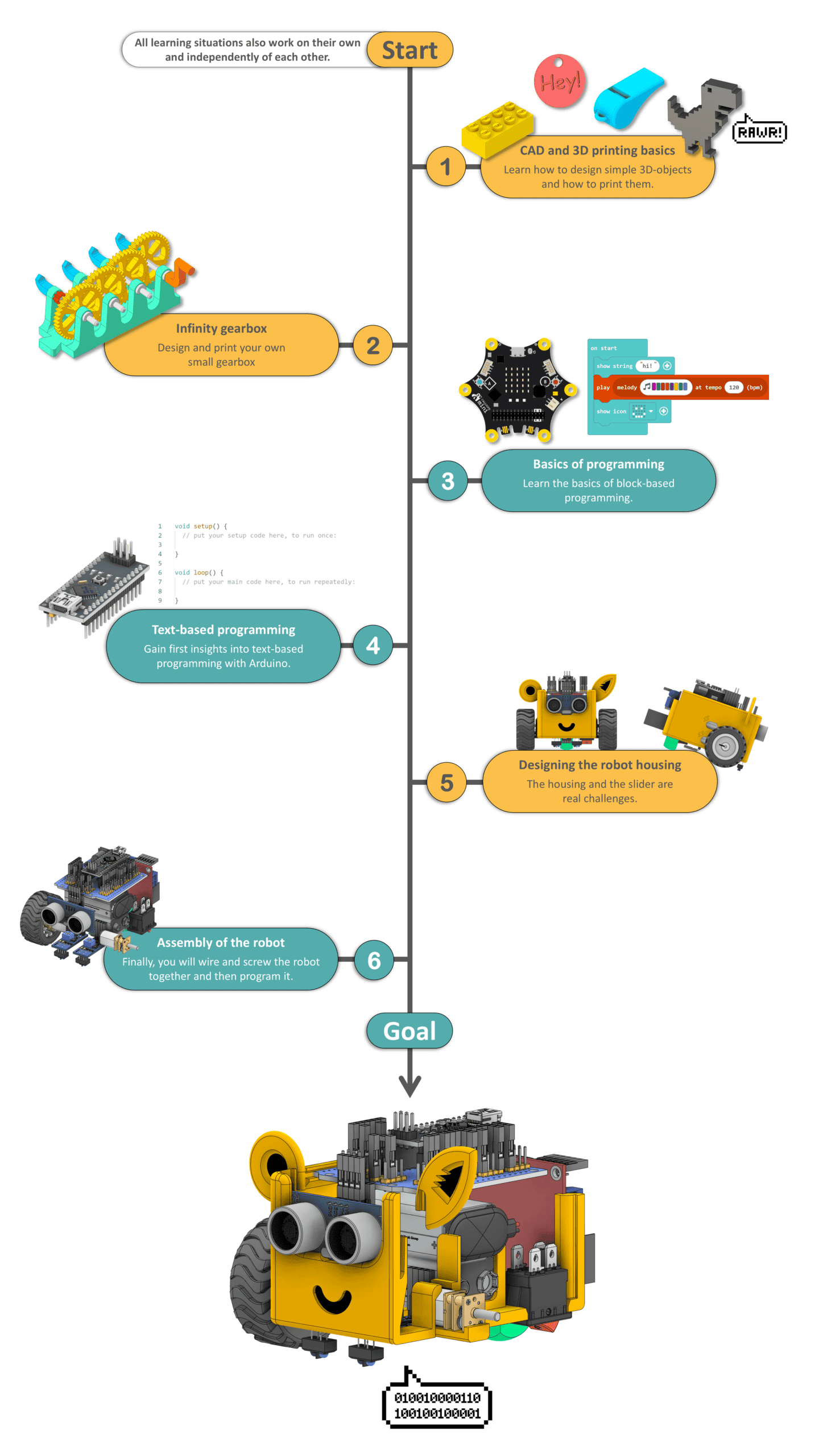 You’ve no idea how 3D printing works, don’t know what CAD is, and haven’t a clue about electrical engineering or programming? Perfect - then you’ve come to the right place! :)