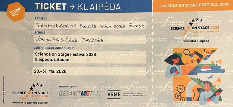 Mit dieser Auszeichnung hat sich die Technikwerkstatt für das internationale Science on Stage Festival 2026 in Klaipėda (Litauen) qualifiziert. Dort treffen sich Lehrkräfte aus über 30 Ländern, um ihre Projekte zu zeigen und sich auszutauschen. Bis dahin wird hier natürlich weitergetüftelt. Es gibt neue Workshops, neue Ideen und in Zukunft auch neue Prototypen des Roboters. Das Projekt steht nicht still!