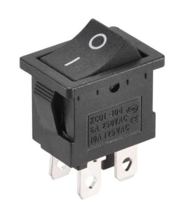 Der Kippschalter dient als Hauptschalter für den Roboter. Durch die vier Pins können bis zu zwei Akkufächer angeschlossen werden. Akkus sind nicht im Lieferumfang enthalten.