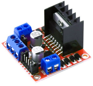 Der L298N Motortreiber ist das Bindeglied zwischen Arduino und Motoren. Er verstärkt die Steuersignale des Arduino so, dass die Motoren sicher mit ausreichend Strom versorgt werden. Dadurch kann der Roboter vorwärts und rückwärts fahren, lenken und seine Geschwindigkeit verändern.