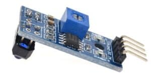 Der Infrarotsensor erkennt helle und dunkle Flächen. Er sendet Infrarotlicht aus und misst die Reflexion, so kann der Roboter zum Beispiel Linien folgen oder Kanten erkennen.