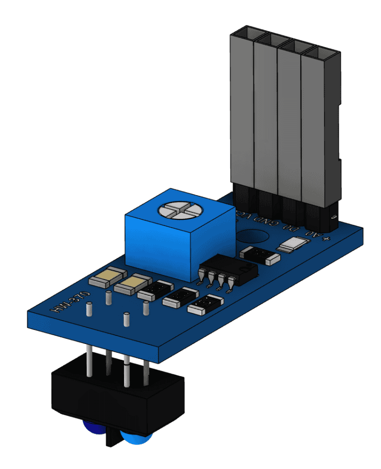Mit Hilfe des Infrarotsensors kann der Roboter eine schwarze Linie auf dem Boden erkennen.